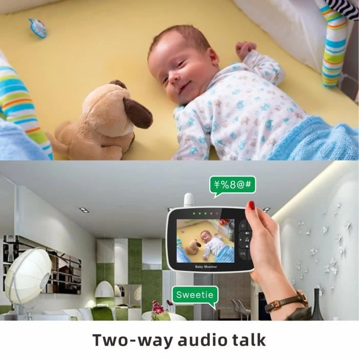 Babyphone PRUMYA 3.5 Pouces Moniteur Vidéo Bébé 2.4 GHz Caméra Zoom Rotation 360°affichage Température Berceuse Vision Nocturne