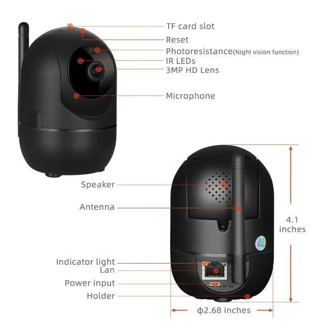 Babyphone Vidéo Wi-Fi Caméra Caméra Vidéo HD WiFi 3MP Moniteur De Vidéosurveillance, Avec Détection De Mouvement Caméra IP Sans Fil