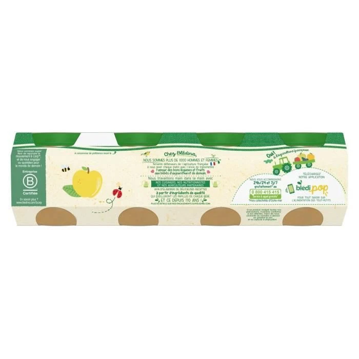 du produitAvec sa texture lisse, ce petit pot est idéal pour les 1ères cuillères de bébé et pour lui faire découvrir le goût des fruits dans une recette simple. Les fruits blédina sont spécialement cultivés pour les tout-petits, selon des règles très strictes, et sont soigneusement cueillis au rythme des saisons ! 80% de nos ingrédients sont français en moyenne dans notre gamme de pots !