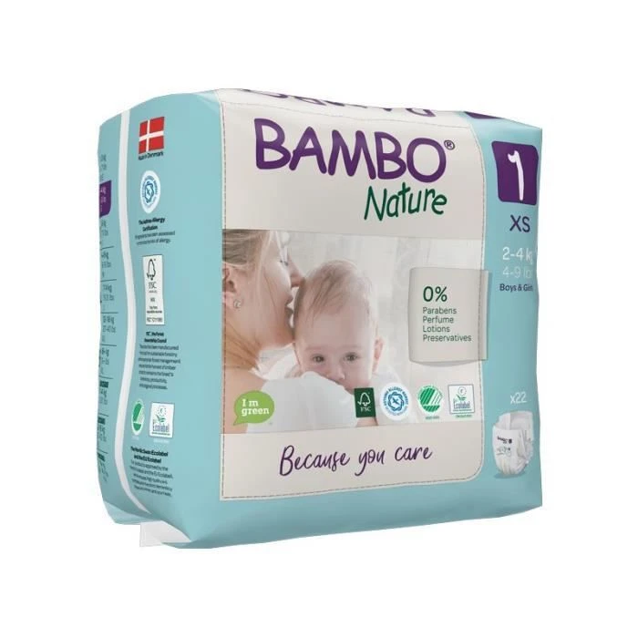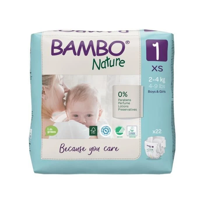 Couches Bambo Nature Newborn T1 (2-4 kg) – 6 paquets de 22