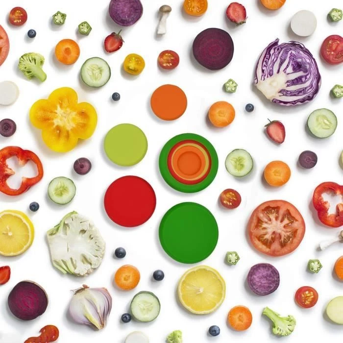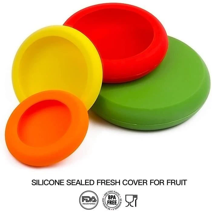 Couvercle Silicone Stretch Alimentaire,4pcs Réutilisable Couvercles Silicone Extensible Conservation Des Fruit,Tasses,sans BPA