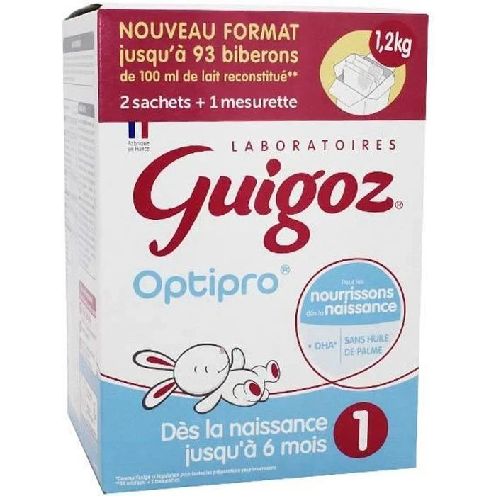 Guigoz Optipro Lait 1er Âge 1,2kg convient aux nourrissons dès leur naissance quand ils ne sont pas allaités au sein, conformément à la réglementation. Avis important : Le lait maternel est, pour chaque nourrisson, l’aliment qui lui convient le mieux. Toutefois, si vous ne pouvez pas ou ne souhaitez pas allaiter, votre pharmacien ou médecin vous conseillera un lait infantile pour votre enfant. Ne changez pas de lait.