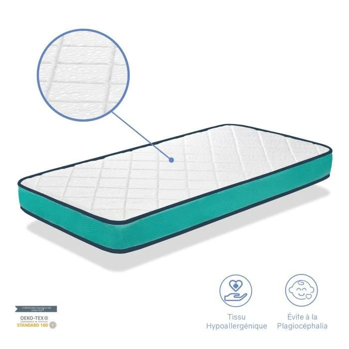 Matelas Bébé EMMA 60X120 Epaisseur 10 CM – Noyau Mousse Perforée Et Anti Bactérien
