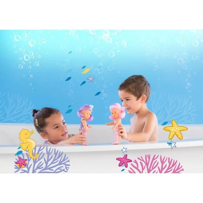 du produitChaque enfant pourra choisir la Mini Sirène qui lui plait ou collectionner tous les modèles !Elle est habillée d’un maillot de bain deux pièces scintillant et est coiffée d’un diadème. Pour latransformer en sirène : rien de plus simple ! Il suffit de clipser sa demi-queue sur ses jambes.Elle a un corps tout en vinyle doux au toucher et à la délicate senteur de vanille. Ses yeux marronsont peints. Elle a des cheveux rose.La mini poupée Mini Sirène Nérina est vendue dans son emballage « boîte cadeau » aux couleurs de l’océan, prête à offrir ! C’est le cadeau idéal pour un goûter d’anniversaire, une surprise… et pour jouer dans le bain !Cette petite poupée nomade, compagne de baignade, se glisse aussi facilement dans un sac ou dans uncartable pour accompagner votre enfant tout au long de la journée.