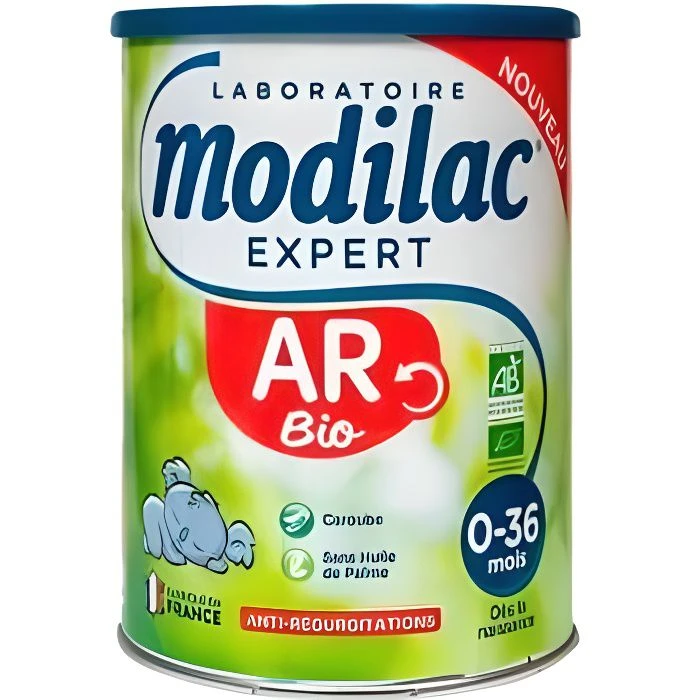Modilac Expert Bio AR Anti-Régurgitations des laboratoires Modilac est un lait infantile en poudre adapté à l’alimentation du nourrisson de la naissance jusqu’à l’age de 36 mois. Il convient aux bébés souffrant de régurgitations sévères. Il apporte aux nourrissons les nutriments essentiels à leur croissance, dont le fer qui participe au développement cognitif de l’enfant. Sa formulation sans huile de pal