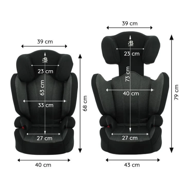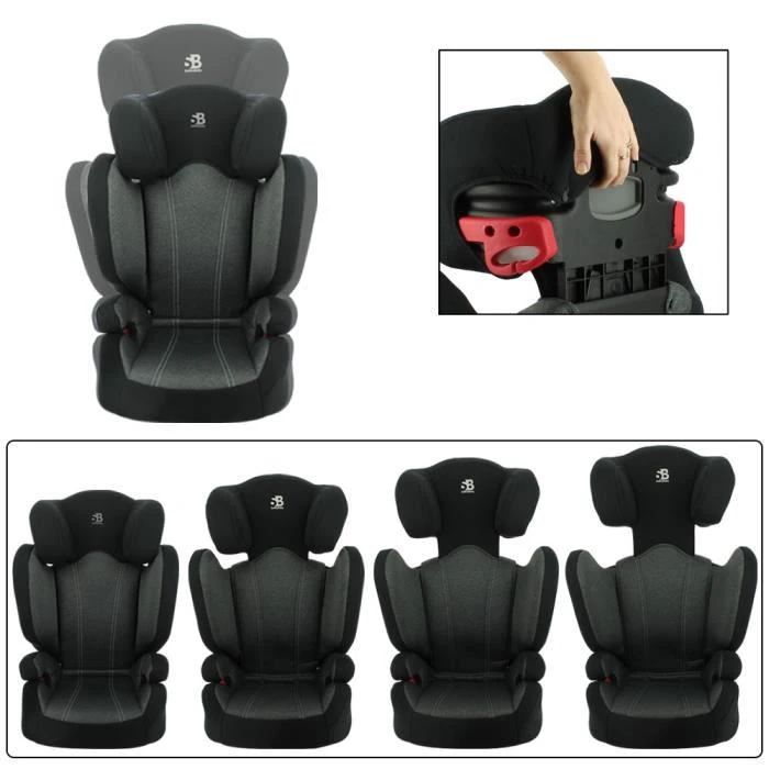 Fixation isofix pour une installation rapide et efficace – Dossier inclinable pour plus de confort – appuie-tête ajustable en hauteur – protections latérales – Rehausseur avec dossier groupe 2/3 pour les enfants de 15 à 36 kg – Installation face à la
