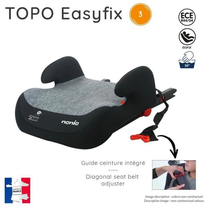 Siège Auto Rehausseur Bas TOPO EASYFIX Groupe 3 (22-36kg) Avec Porte Gobelet – Fabriqué En France – Nania London