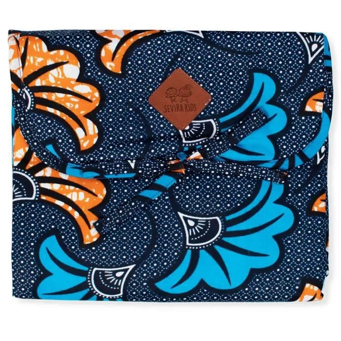 Tapis à Langer Nomade – Wax Fleurs De Mariage – Bleu
