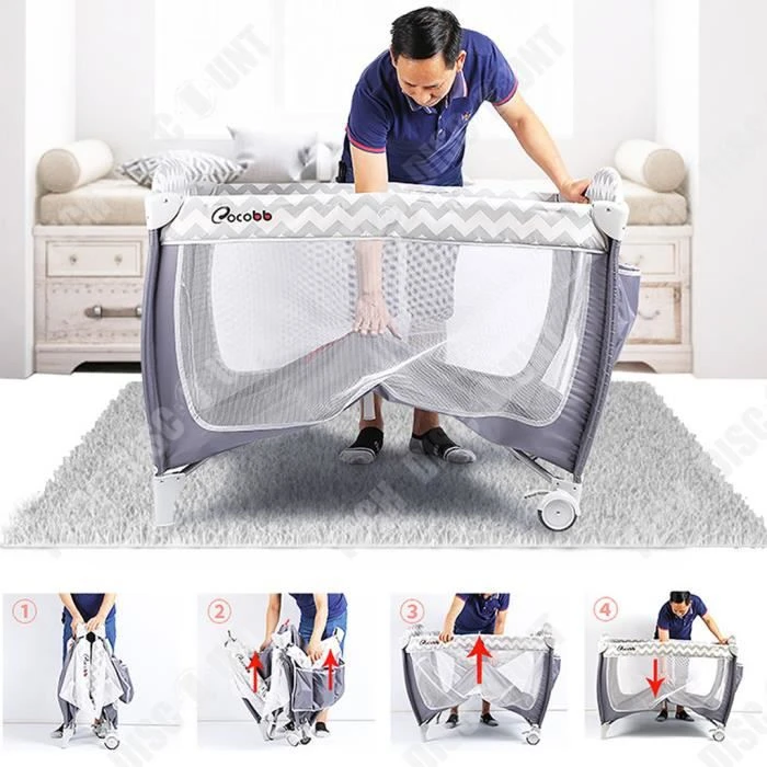 Fonction : avec roulettes, avec moustiquaire, pliable, lit de jeu, portable.