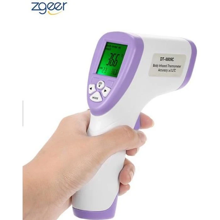 Thermomètre Numérique Médical, Thermomètre Infrarouge Professional Pour le Bébé, les Adultes et L’objet, Approuvé par la CE et la FDA/ Caractéristiques:/ Afficheur numérique LCD rétro-éclairé, léger et portable à utiliser./ Pointeur laser intégré, mesure infrarouge précise sans contact./ 2 unités de température pour la conversion: Fahrenheit ou Celsius, appuyez longuement sur « MODE » plus de 5 s.
