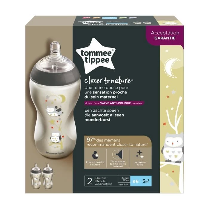 TOMMEE TIPPEE Biberons Closer To Nature 340ml X2 Ollie La Chouette