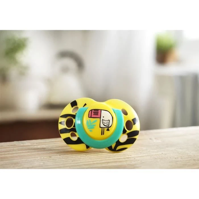 du produitLes mamans le savent, il n’y a rien de plus beau qu’un bébé paisible et détendu ! C’est pourquoi notre tétine symétrique a été spécialement conçue pour faciliter l’acceptation de bébé. Des tests réalisés par un laboratoire indépendant ont d’ailleurs montré qu’une majorité de bébés l’acceptent dès lapremière utilisation* Vendues par pack de 2, nos sucettes Fun ont un design audacieux et tendance.Elles sont également garanties sans BPA** pour une tranquillité d’esprit optimale.Design coloré et amusantNaturellement confortableTétine symétrique pour encourager l’acceptation par bébé et encourager le développement buccalTétine de forme réversibleSans bpa, idéale pour les nouveaux nés et une utilisation quotidienne*Etude réalisée auprès de 112 mamans et bébés 68% des bébés acceptent cette nouvelle sucette dès lapremière utilisation contre 43% pour l’ancienne sucette. **Sans Bisphénol A conformément à la réglementation en vigueur