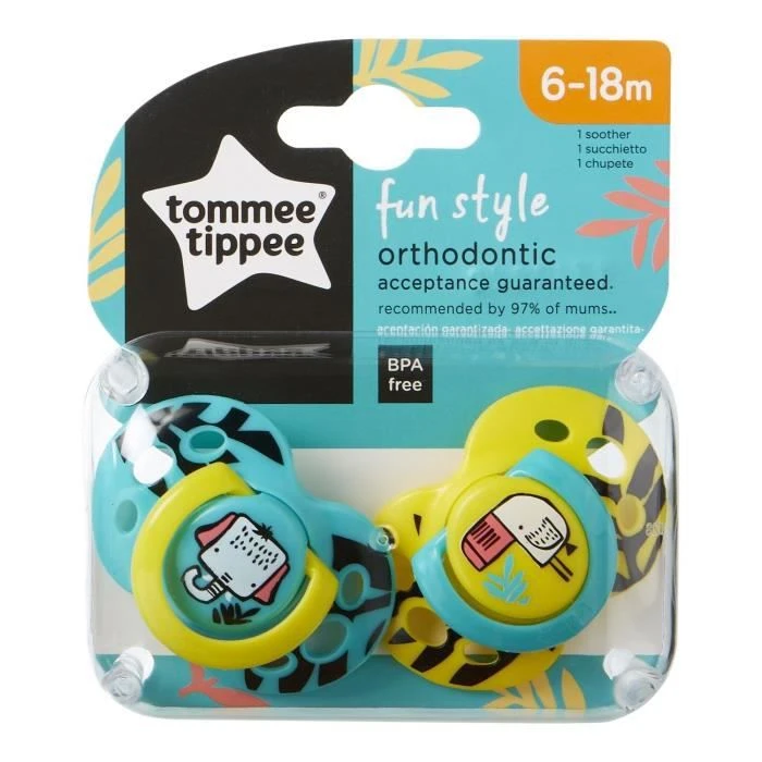 TOMMEE TIPPEE Sucette Fun – Lot de 2 – 6 – 18 mois