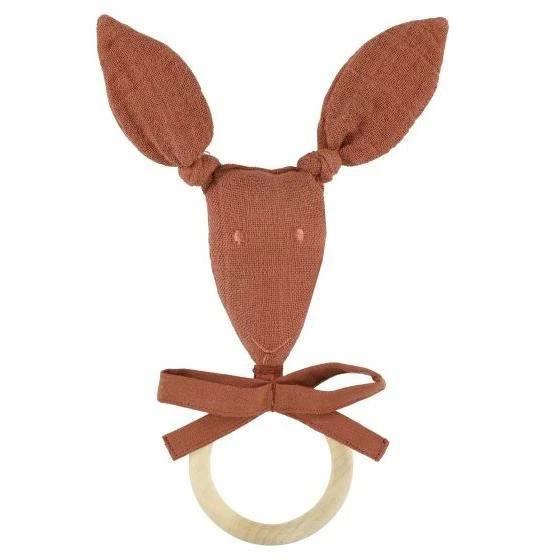 Avec cet anneau de dentition, votre enfant dispose d’un jouet amusant qui est également parfait pour les premières dents. Cet anneau de dentition se compose d’un anneau en bois et d’un mignon kangourou en coton 100% biologique. Le kangourou a une petite cloche à l’intérieur qui sonne joyeusement quand les bébés jouent avec l’anneau de dentition.