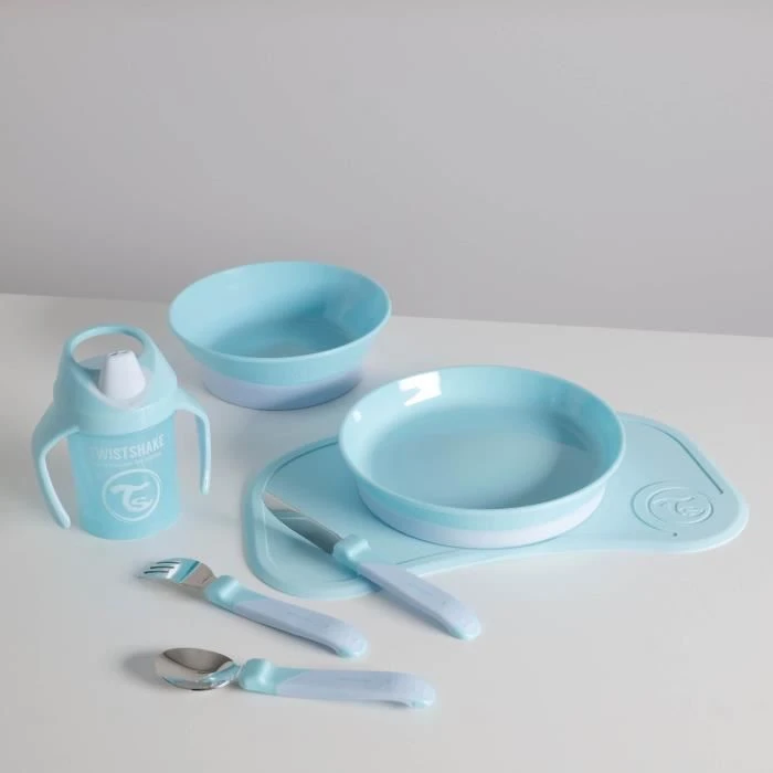 Twistshake Lot De Vaisselle – Bébé – 4 Pcs-1 Set De Table – 1 Assiette – 1 Bol – 3 Couverts En Acier Inoxydable – 1 Gobelet-6m+-Bleu