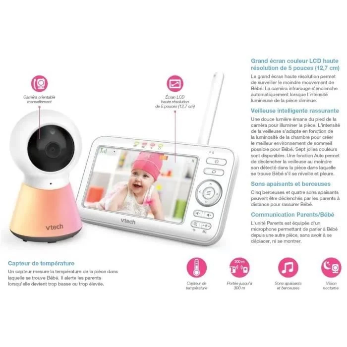 VTECH BABY VTECH – Babyphone Vidéo Color Night Light (Écran 5 – Veilleuse) – BM5254