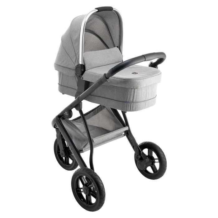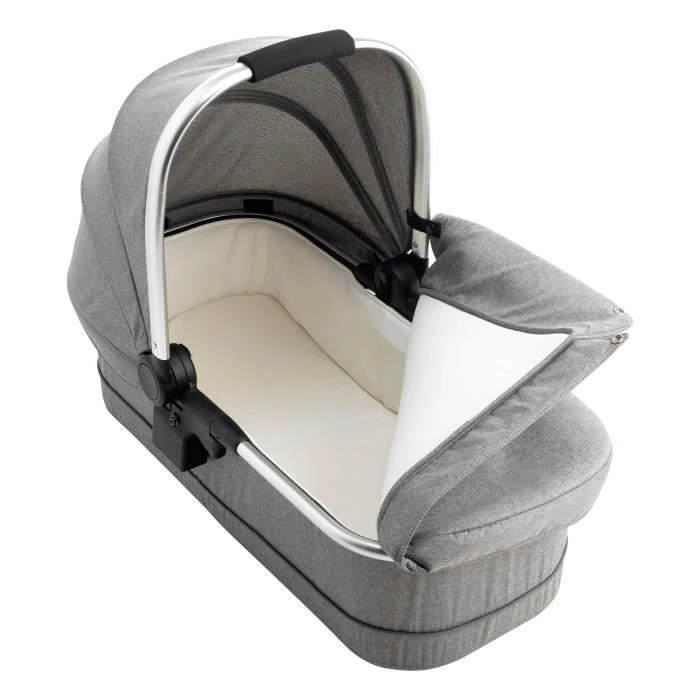 Nacelle phénix Grise compatible avec les poussette du même modèle • Structure aluminium et poignée en mousse • Nacelle pliable en 2 • Livrée avec canopy articulé et tablier protecteur • Dimensions du matelas : 70 x 27,5 x 2 cm • Dimensions pliée : 40 x 45 x 14 cm • Dès la naissance jusqu’à 9 kg.