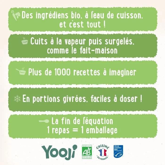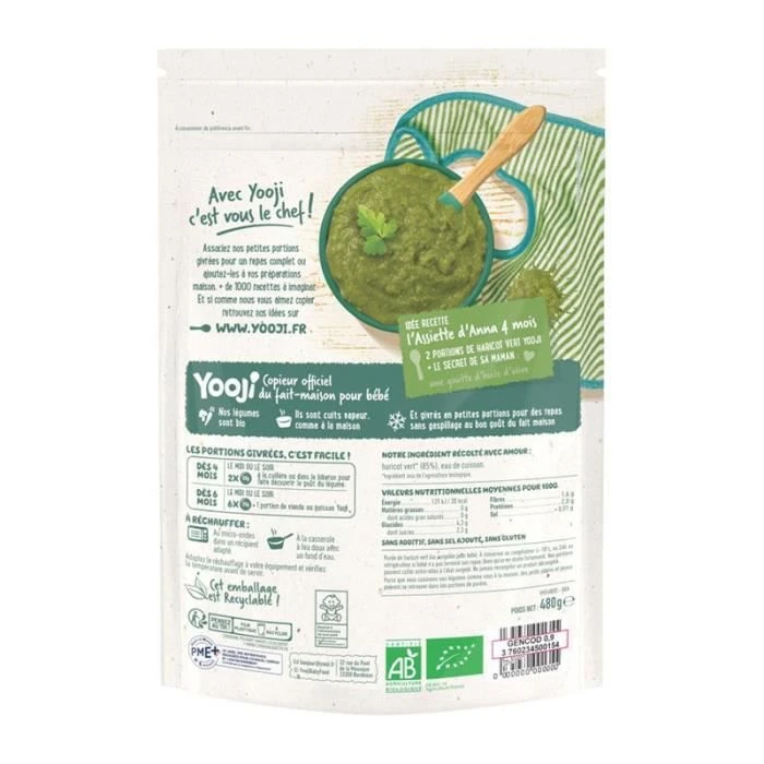Yooji – Purée Lisse Haricot Vert Bio – 12 Repas Bébé Dès 4 Mois